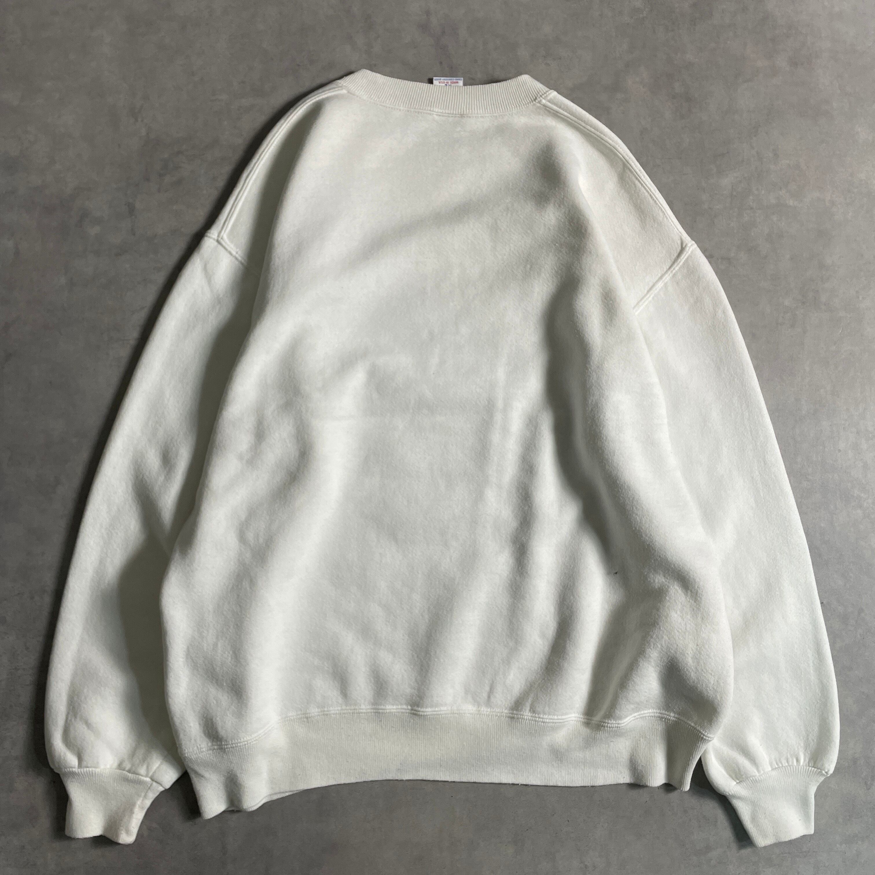 90s USA製 RUSSEL ATHLETIC バス 魚 スウェット 前V 白 ラッセルアスレチック vintage