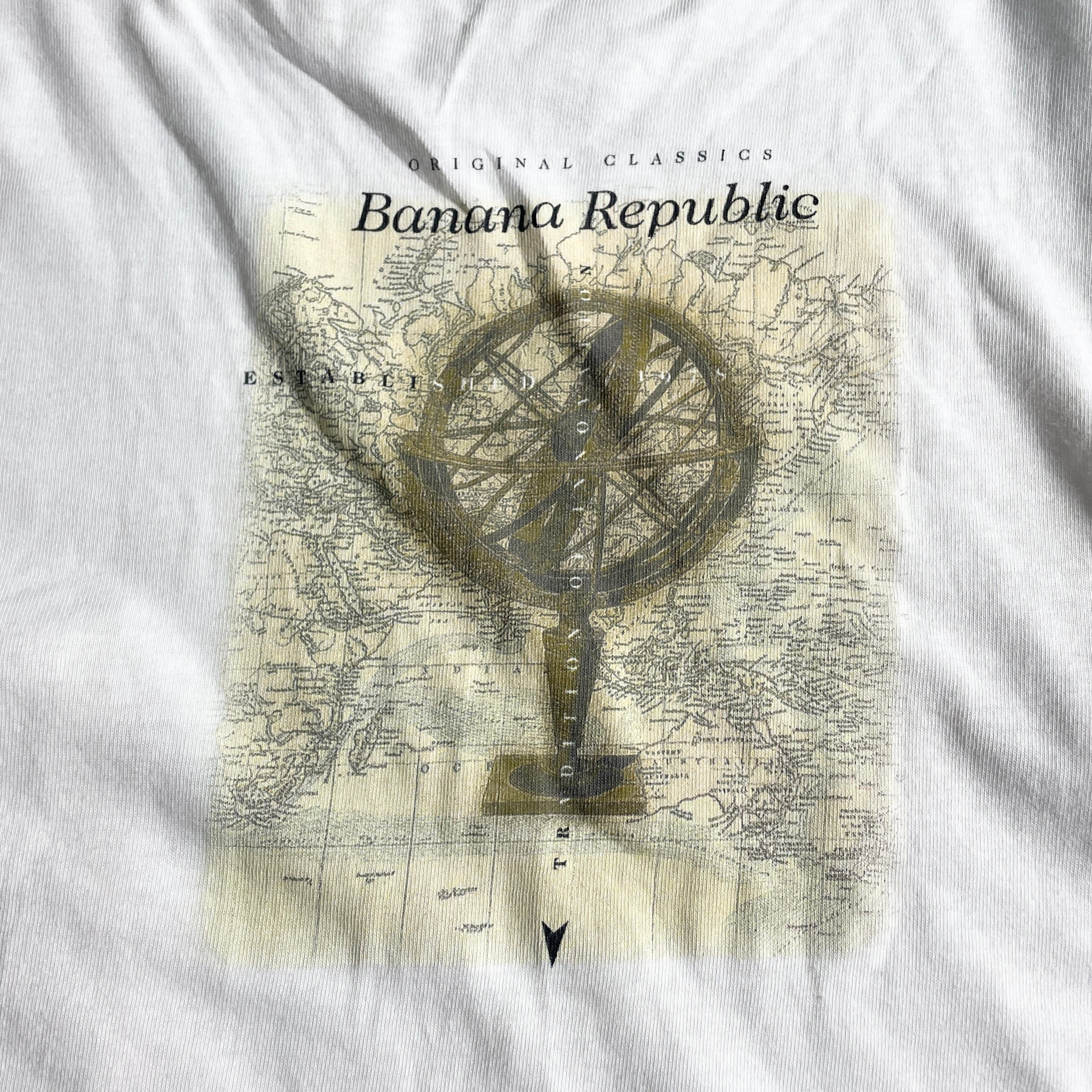 【90s Banana Republic】オールドマップ&天球儀プリントTee 希少ヴィンテージ 白タグ オールドサファリテイスト