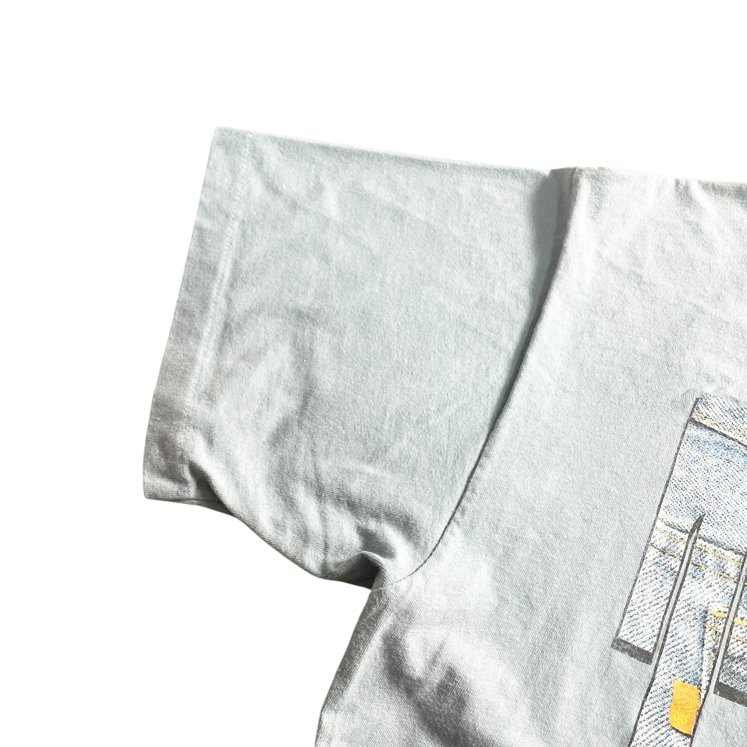 90年代らしさ満点の「TEXAS」ロゴを大胆にあしらったフォトプリントTシャツ。文字の中にリアルなデニムパンツのディテールがコラージュされており、まさにアメリカン・ワーク&カレッジテイストのど真ん中を貫くデザイン。