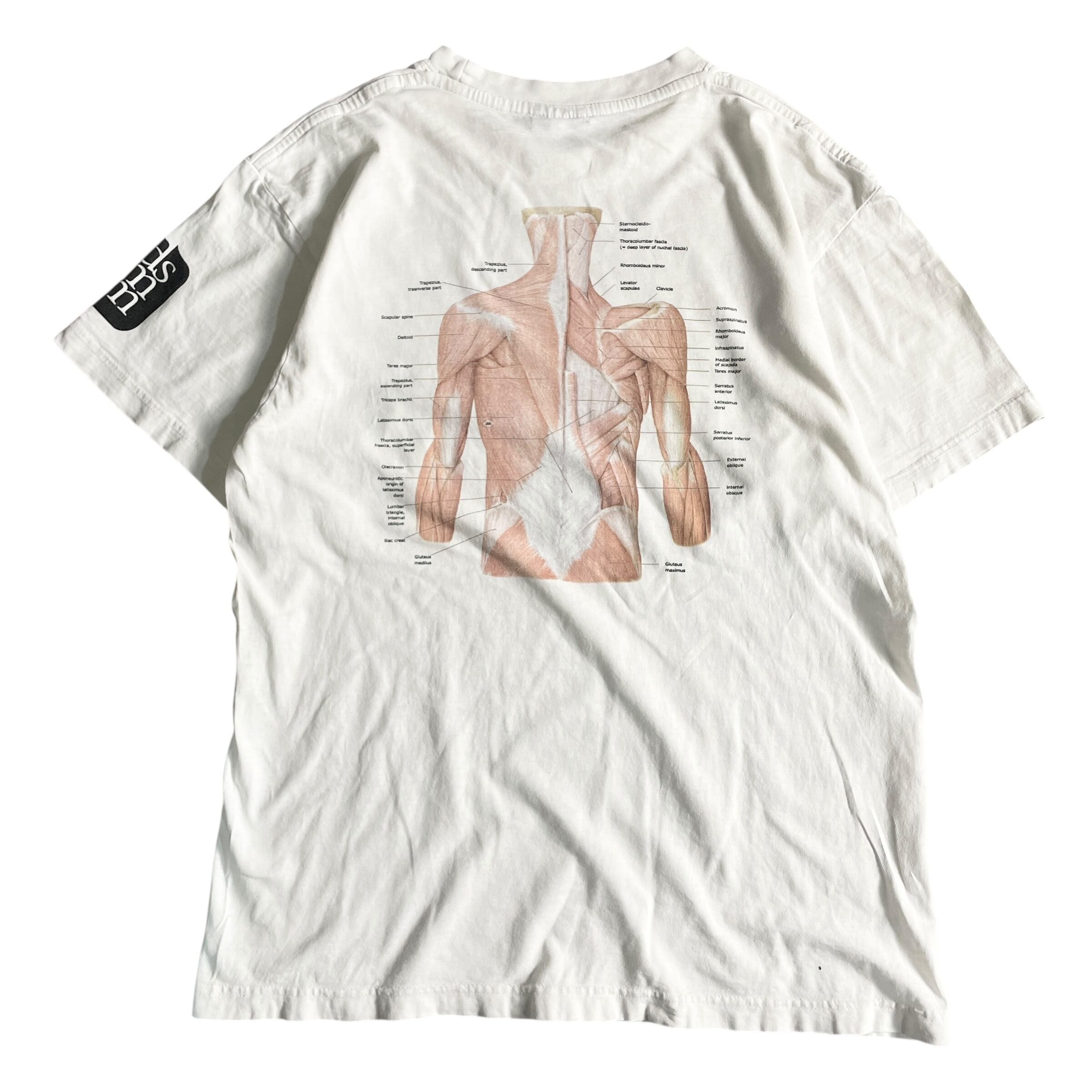 DSM(Dover Street Market)系ロゴを袖に携えた、医療・解剖学モチーフのグラフィックTシャツ。フロントにはリアルタッチで描かれた骨格標本、バックには筋肉図解が大きくプリントされ、知的でインパクトのあるルックに仕上がっています。ヴィンテージ ビンテージ tシャツ