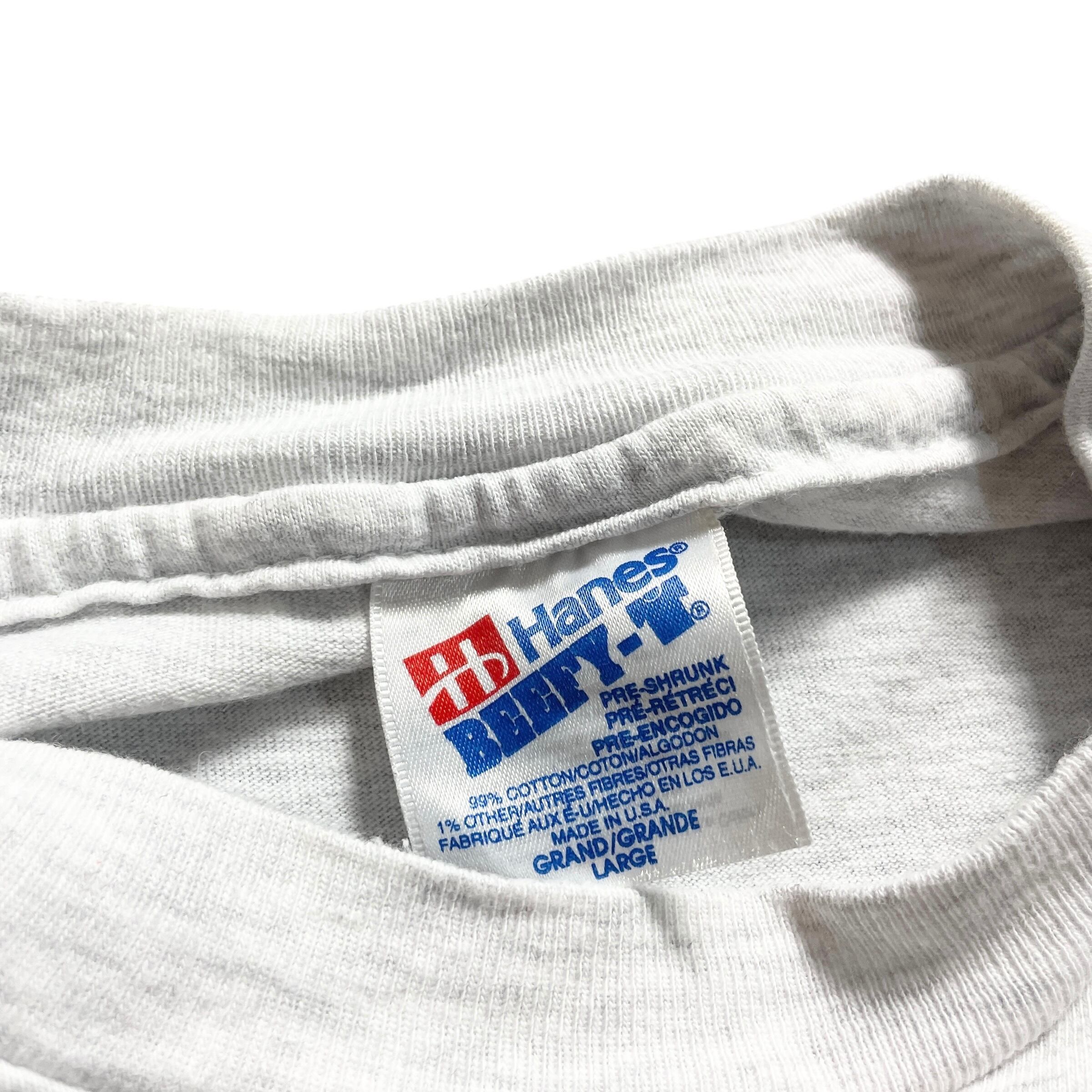 アメリカのスポーツバー「Bogies」発、プールバー(ビリヤード)をテーマにしたグラフィックTシャツ。キューを構えたサングラスの男性と、90sアニメ風の女性キャラが描かれており、当時のバーカルチャーやポップアートの雰囲気を色濃く反映しています。グレー地に映えるカラフルなプリントが目を惹く、古き良きアメリカ感満載の一枚です。ヴィンテージ ビンテージ tシャツ シングルステッチ