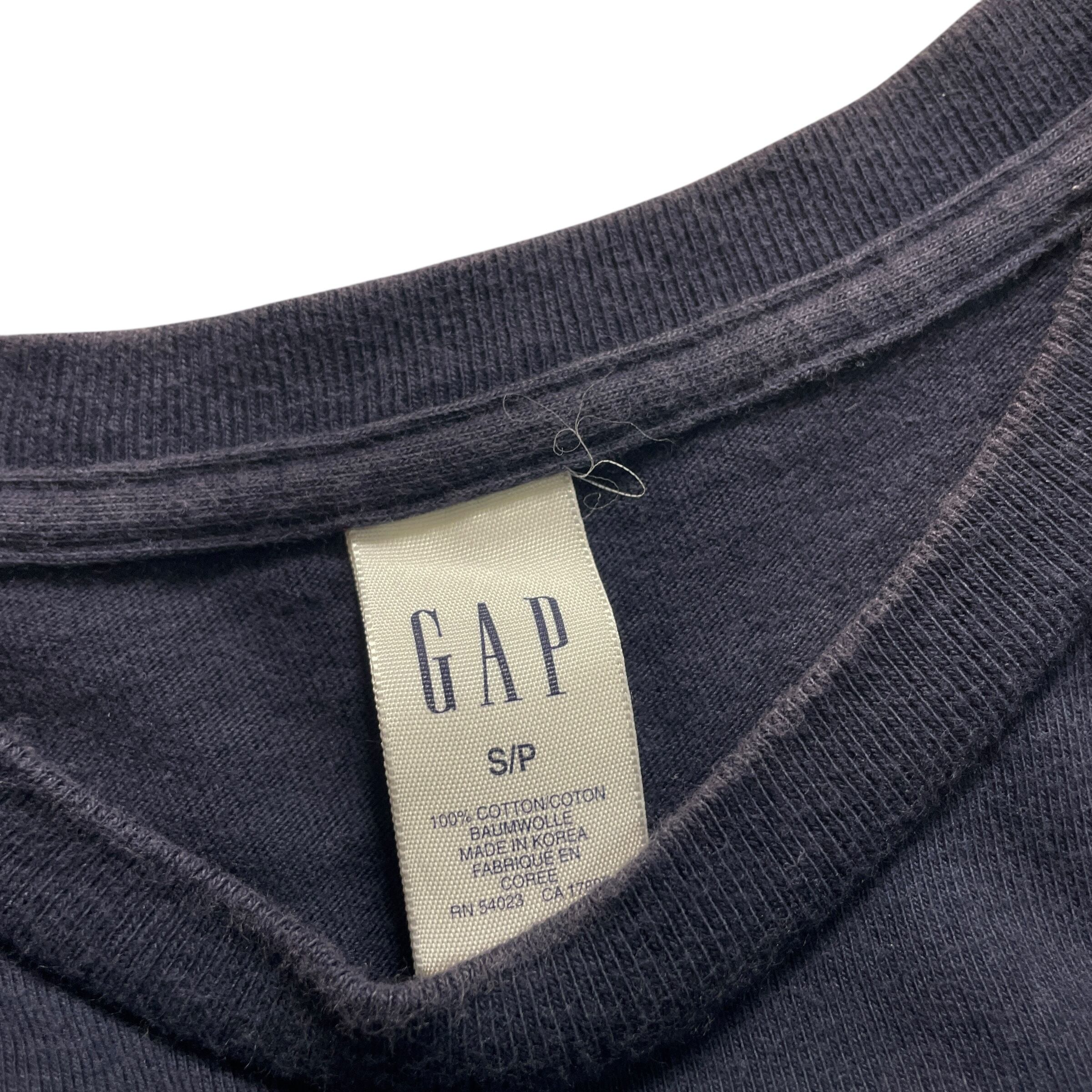 クラシックかつどこか都会的な佇まいの一着。ネイビーボディに赤・白のアーチラインが映える、90年代らしさ漂うGAPのロゴTシャツです。ミニマルながらも存在感あるデザインで、オールドGAP好きにはたまらない一本。シンプルにデニムや軍パンで合わせるだけでグッと雰囲気出ます。着込んだボディのフェード感も◎。