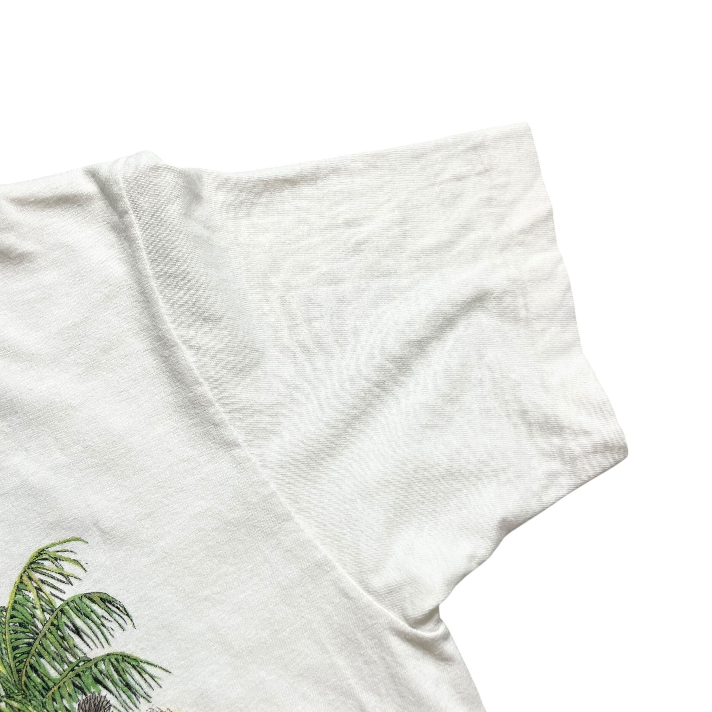 地球を取り囲む動物たちが一堂に会した、ナショナル・ワイルドライフ・フェデレーションによるアースデイTシャツ。パンダ、クジラ、ライオン、ゾウ、カンガルー…と、動物園のようなにぎやかさと同時に、守るべき命の重みを感じさせてくれるアート性の高いデザイン。90年代エコカルチャーを体現する一枚としても要注目です。