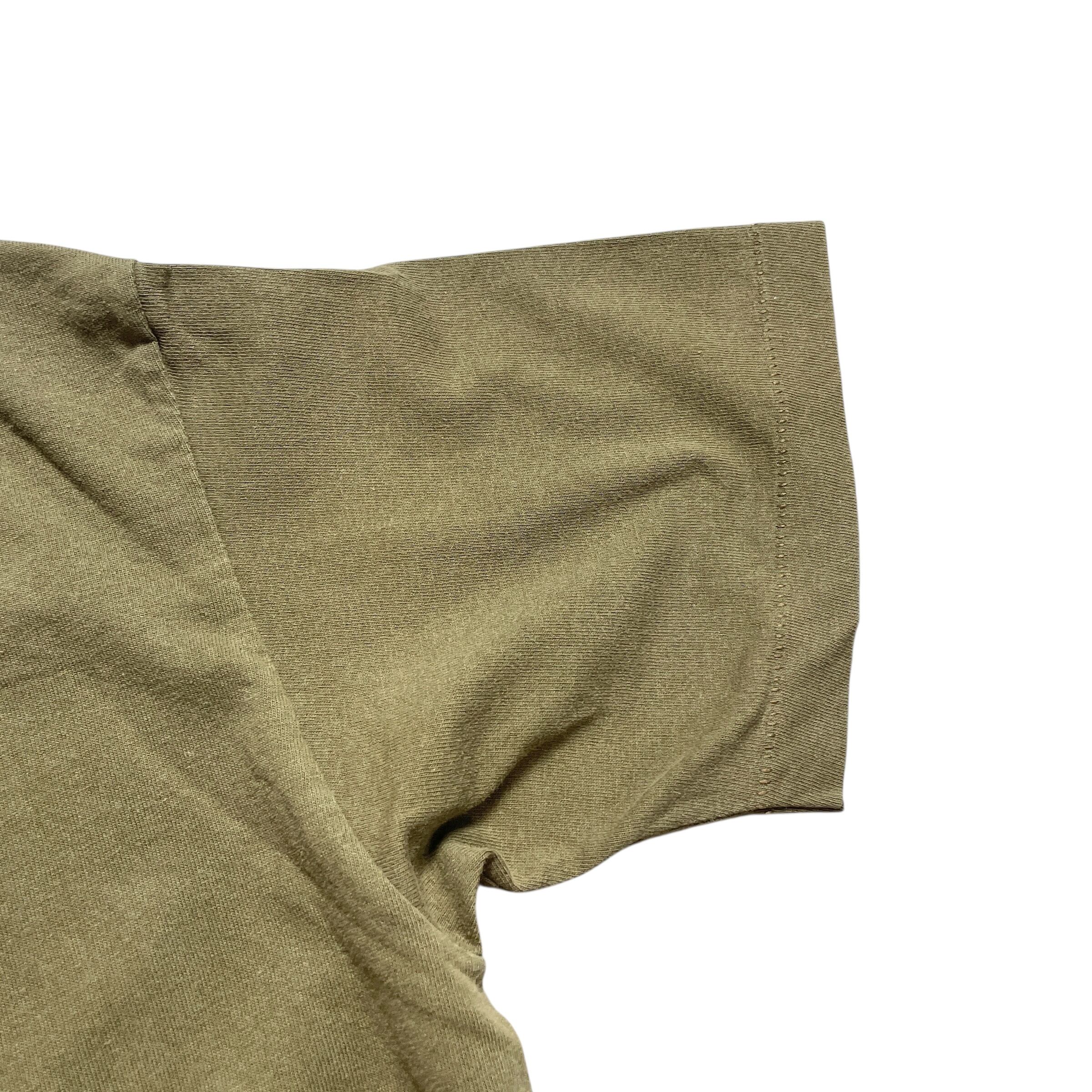 USA製ボディに小さめワンポイント、STUSSYらしいグライダーモチーフのプリントが施されたミリタリーグリーンの一枚。機体にはSTUSSYロゴがバランス良く配置され、シンプルながら存在感のある仕上がり。アメカジにもストリートにも合わせやすく、90sステューシーの中でも渋めな名作。