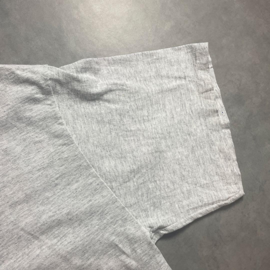 スヌーピーがクールなサングラス姿で「THE LAST OF THE REAL MEN(本物の男の最後の一人)」とキメている、遊び心満載の一枚。背景にはレンチ、ドライバー、ペンチなどの工具類が散りばめられ、まるでDIYマスターのようなスヌーピーが描かれています。1996年表記入りで、Peanuts公式ライセンス物。杢グレーのベースカラーも着まわしやすく、アメリカンポップカルチャーの可愛さと男臭さを絶妙にミックスしたレアなTシャツです。ヴィンテージ ビンテージ tシャツ シングルステッチ