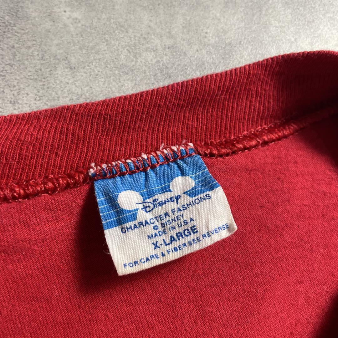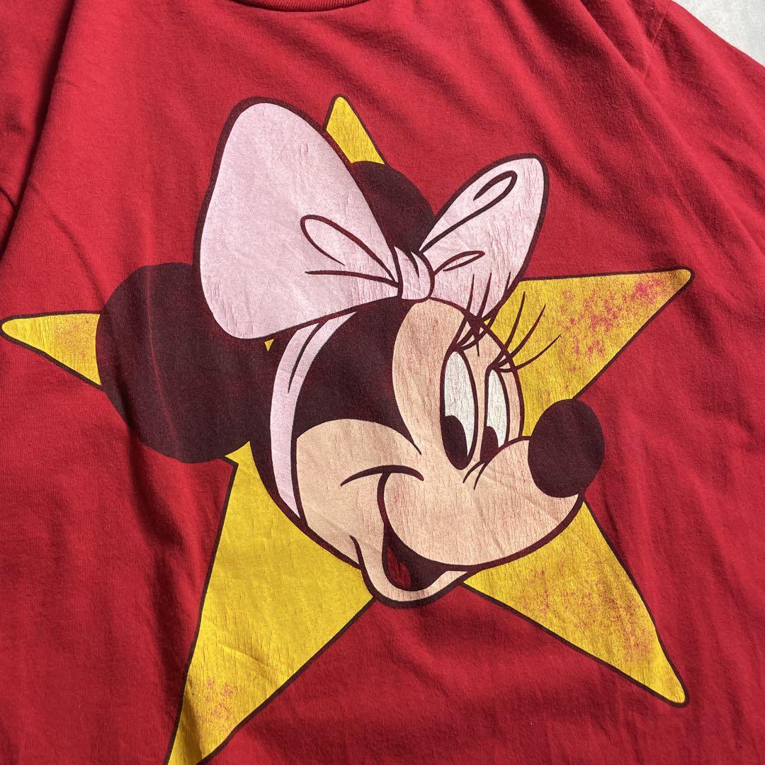 おなじみミニーマウスが主役のこちらは、赤ボディ×イエロースターという王道配色。パステルピンクの大きなリボンがチャームポイントで、どこかレトロアニメ風なタッチも◎。ヴィンテージ ビンテージ tシャツ シングルステッチ