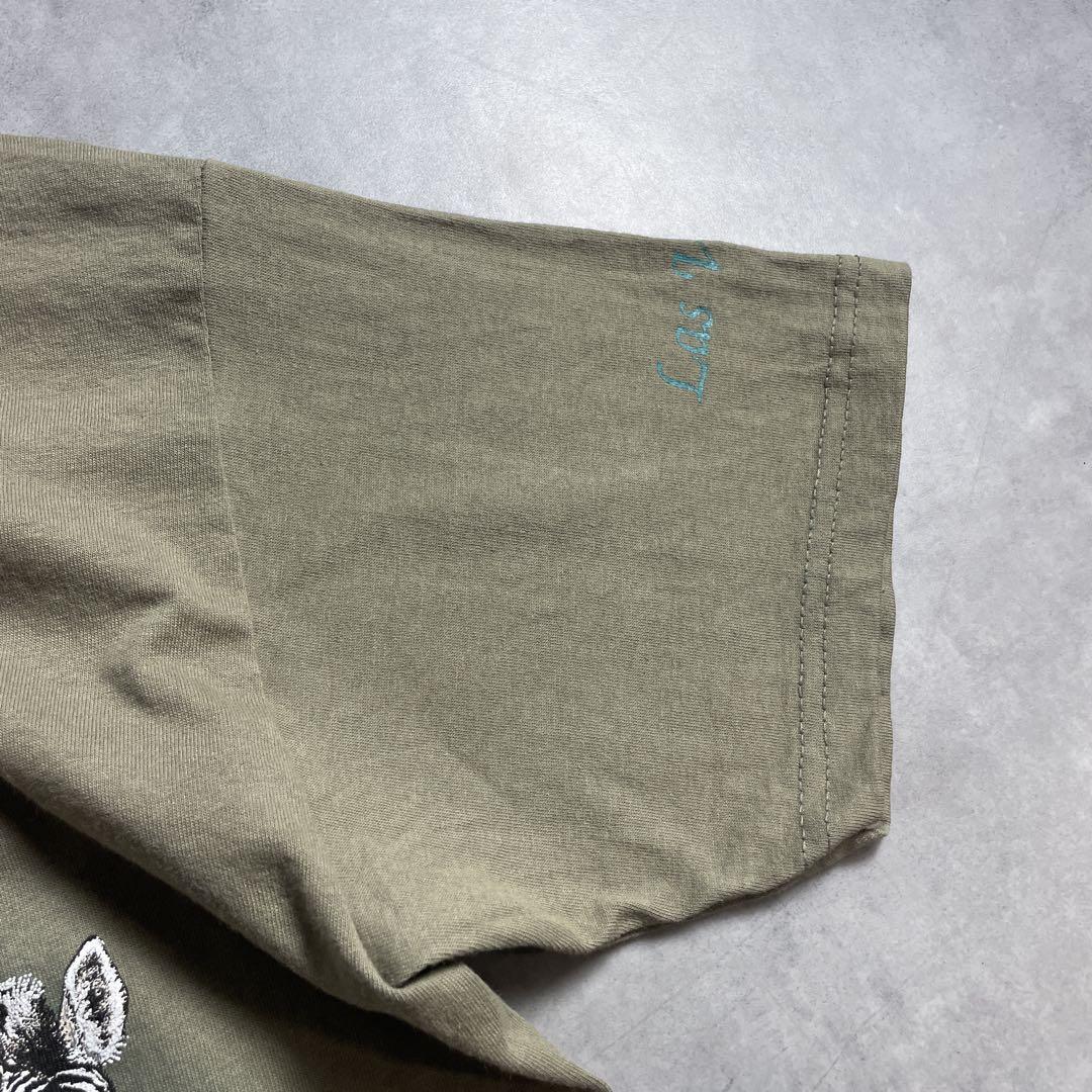 まるで動物園の集合写真のような、圧巻のアニマル総出演Tシャツ。虎、ゴリラ、チーター、白くま、ゾウ…多種多様な動物たちが集まって一言、「all my friends are wild!」。カーキのボディに繊細なフルカラープリント、動物たちの表情もリアルで優しさと野性味が共存しています。ナチュラルやアウトドア系のスタイルにも相性抜群で、1枚で語れるアニマルTの傑作。ヴィンテージ ビンテージ tシャツ