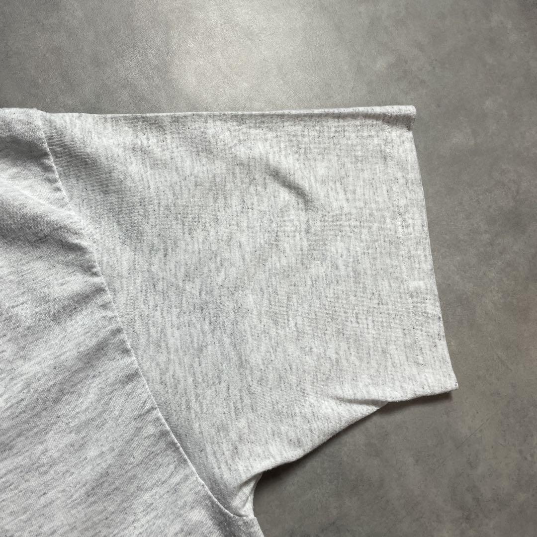 ブラックジョーク炸裂。2つのビーバーのイラストと共に、「これが君の脳」「ホローポイント弾を使ったらこうなる」というメッセージがプリントされた一枚。アメリカのガンカルチャーやハンティングを風刺するような、皮肉混じりのユーモアが全開です。グレーボディにポップなプリントで、一見可愛いけど内容はなかなか攻めた仕上がり。シュール系やガチャガチャT好きにぶっ刺さる、クセ強めなグラフィックTシャツです。ヴィンテージ ビンテージ tシャツ シングルステッチ
