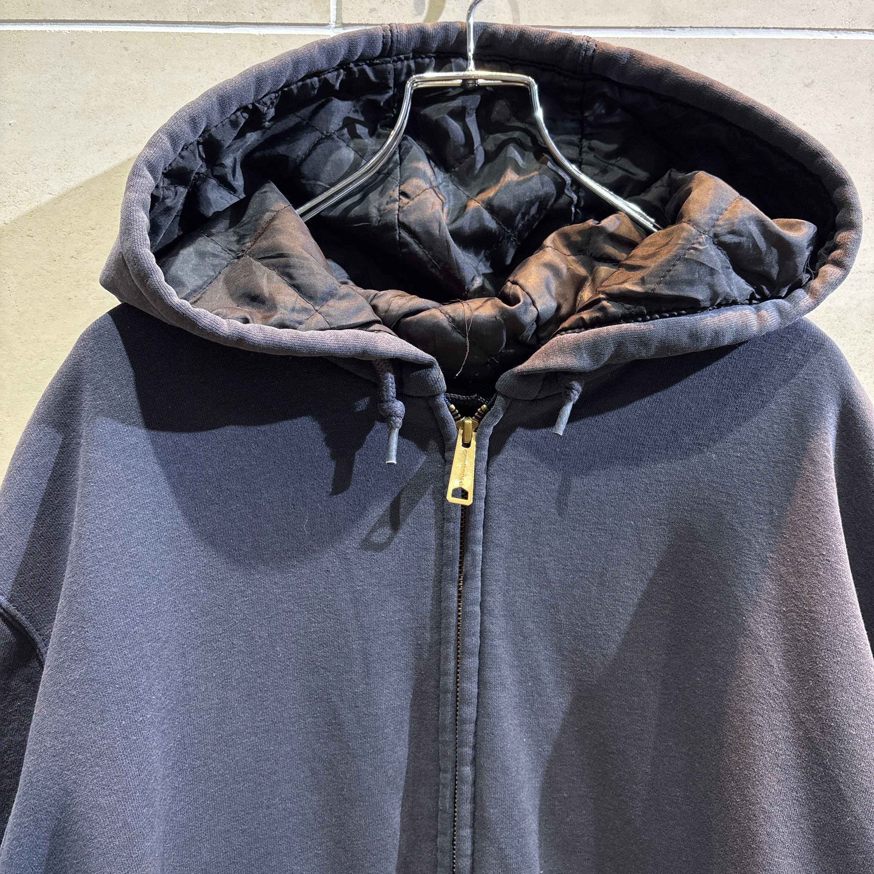 ワークウェアで人気のCarharttの中綿入りフルジップパーカー。フード裏地がキルティング仕様になっており、保温性抜群。程よくフェード感の出たチャコールカラーも魅力的な一点。メキシコ製の2XLと希少サイズ。
