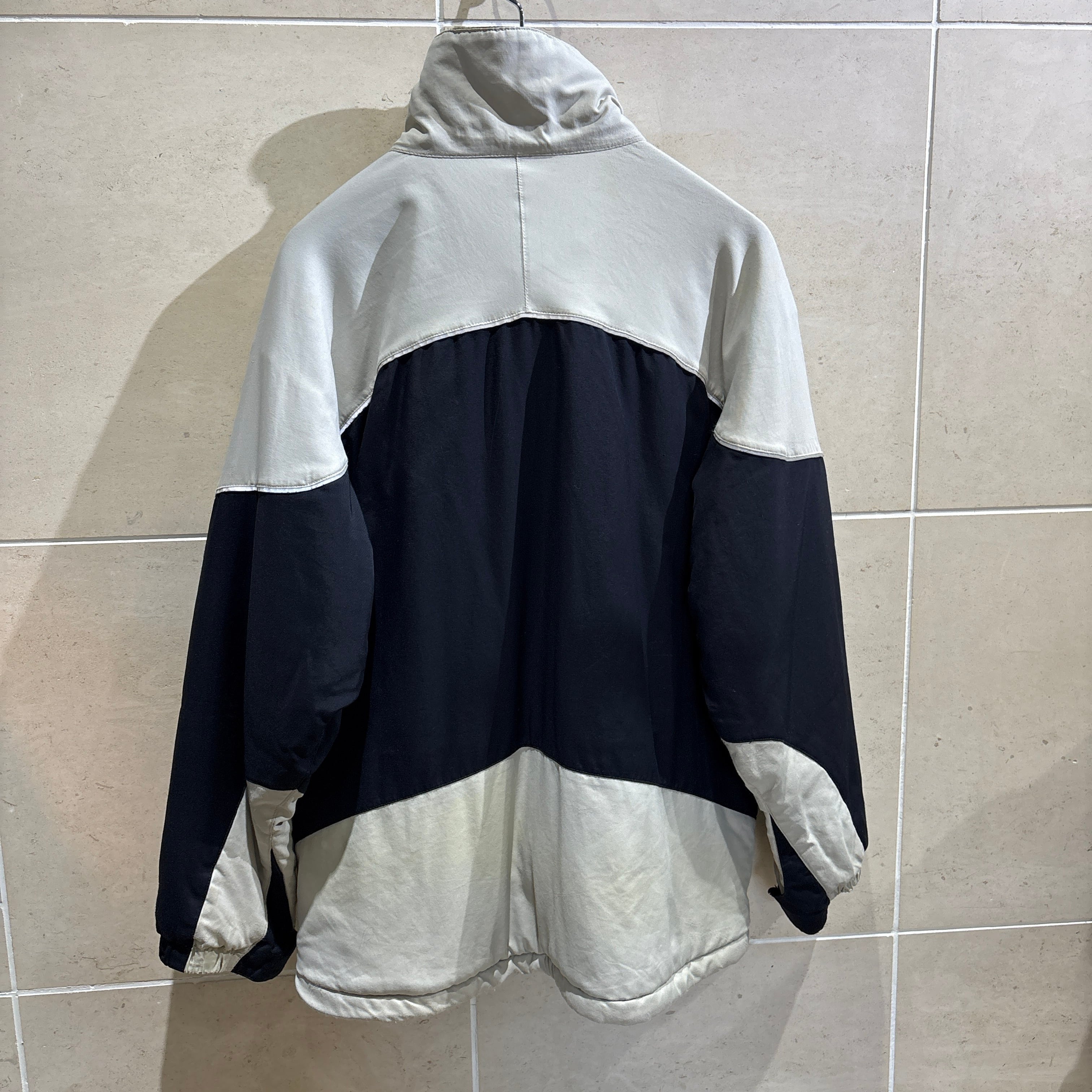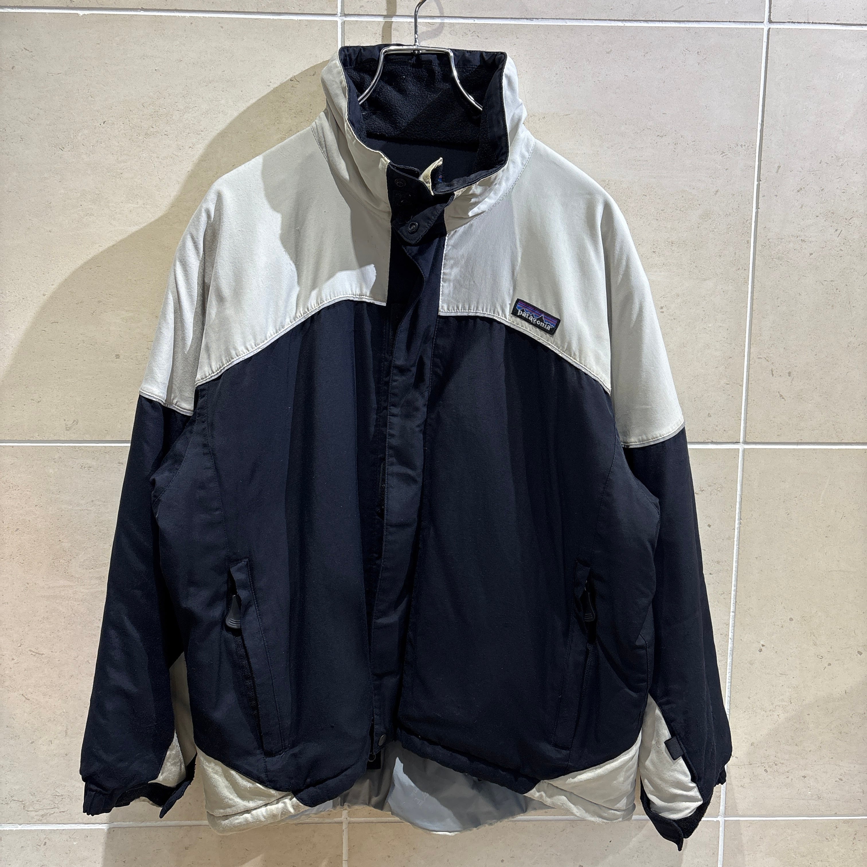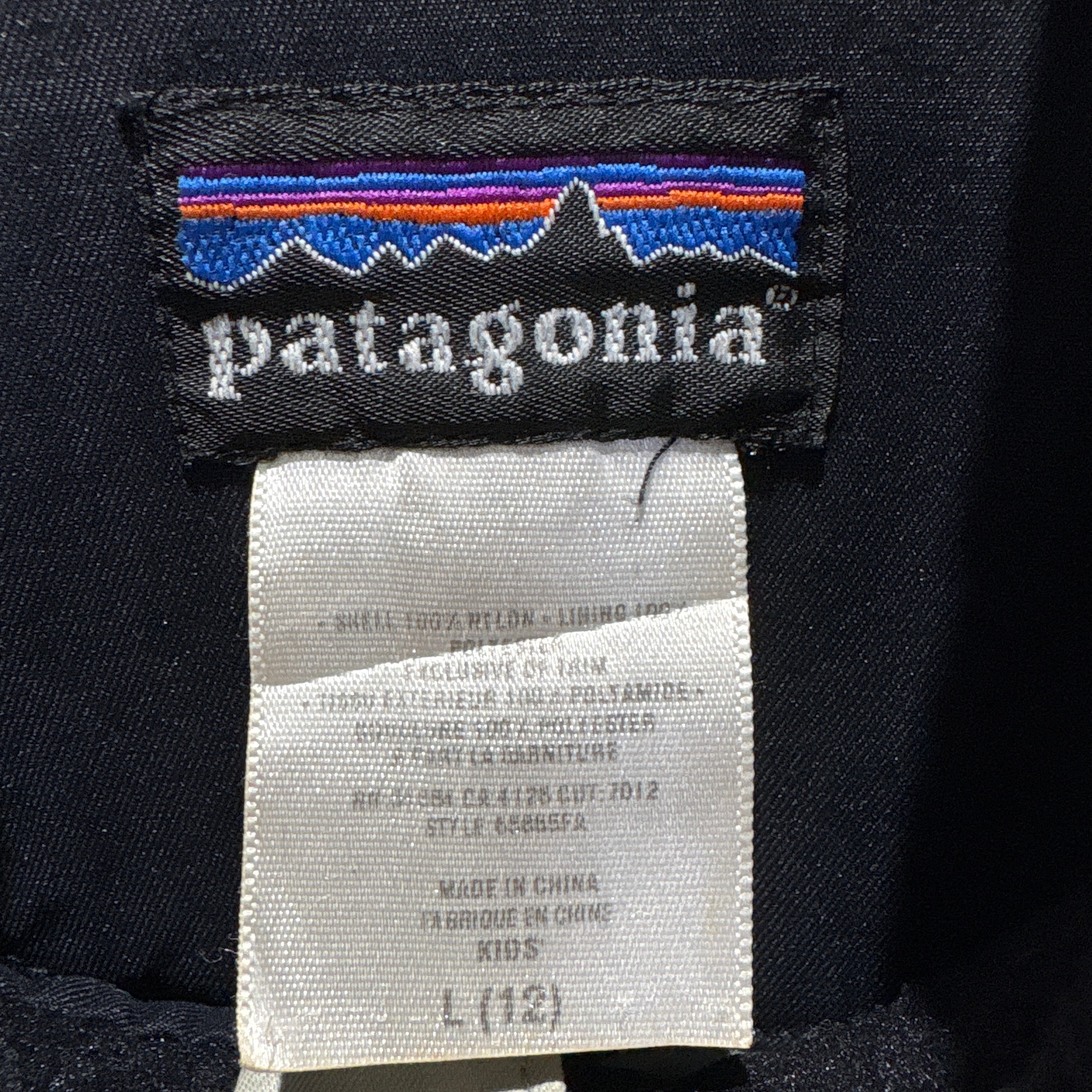 90年代パタゴニアのキッズジャケット。ブラック×グレーの切り替えデザインが特徴。サイズL(12)で小柄な方やレディースにもおすすめ。タグやロゴの刺繍も状態良好です。