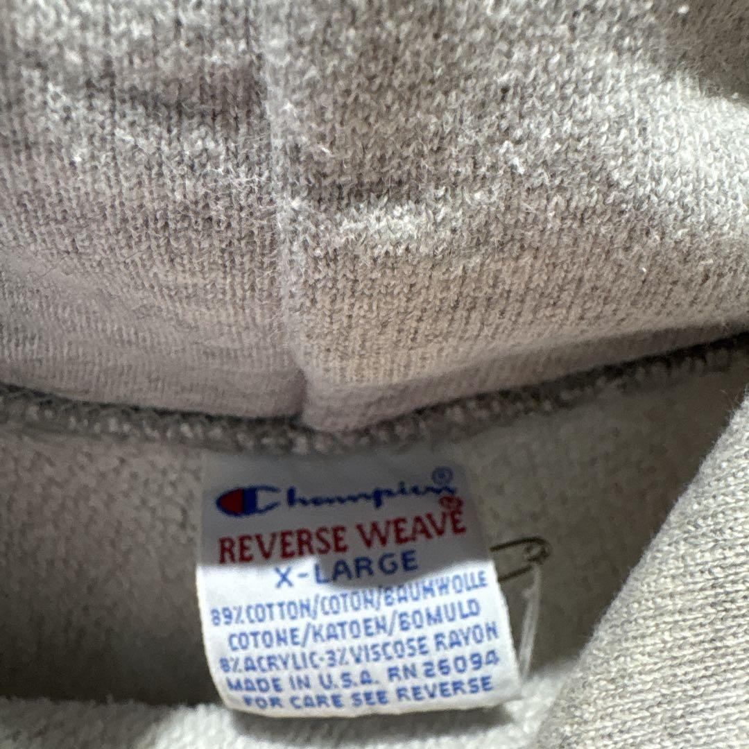 ジョンズ・ホプキンス大学プリント入り、Champion REVERSE WEAVEパーカー。アメリカ製で、ネイビープリントが映える一着。フロントにリペア跡あり。古着ならではの味として楽しめます。