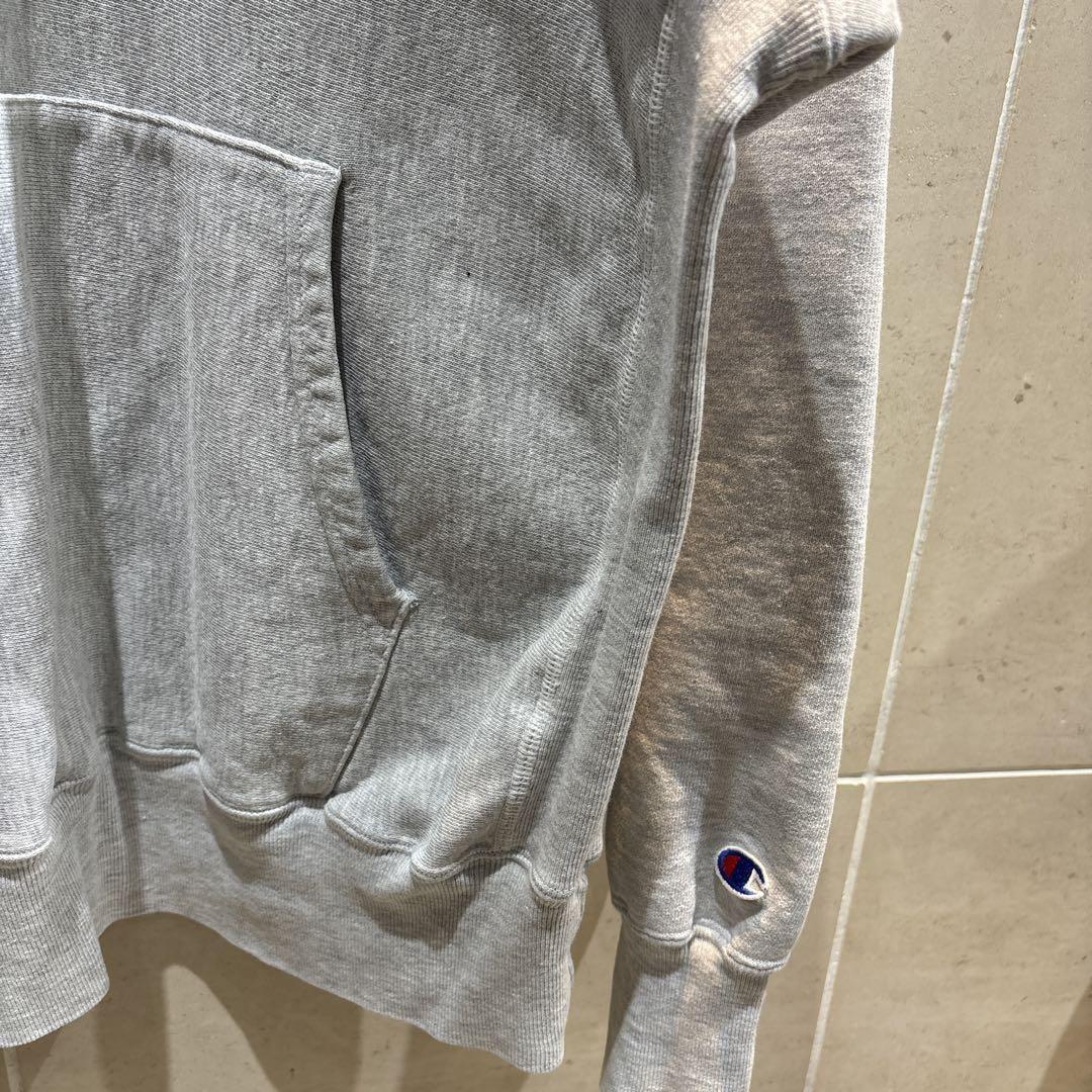 90年代Championリバースウィーブ、アメリカ製。GRAVES MTN. LODGE SYRIA, VAのカレッジプリント。霜降りグレーにネイビープリントの定番カラー。リブに軽度のダメージやフェード感あり、ヴィンテージらしい雰囲気が魅力です。