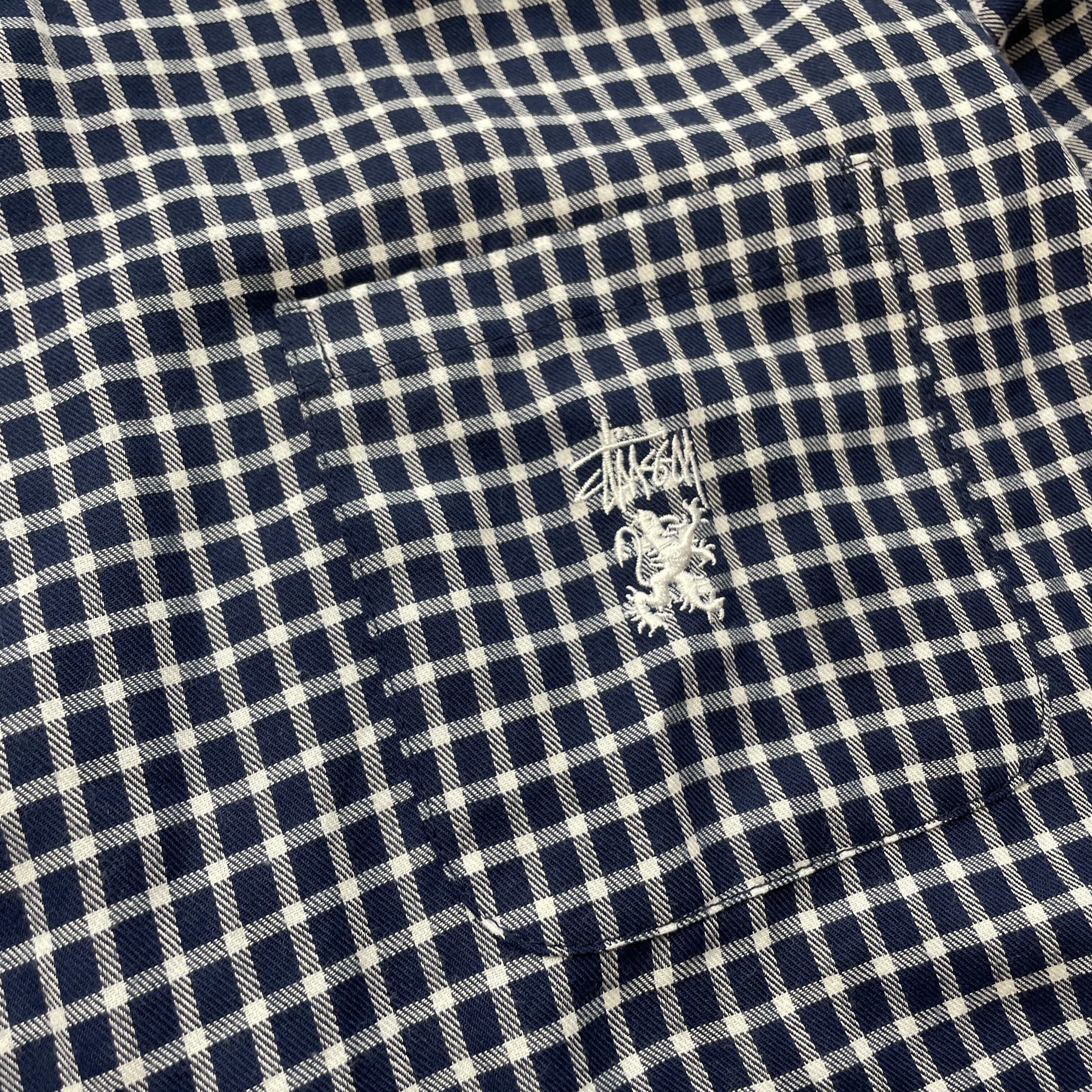 90s OLD STUSSY ライオン チェックシャツ 長袖 ネイビー