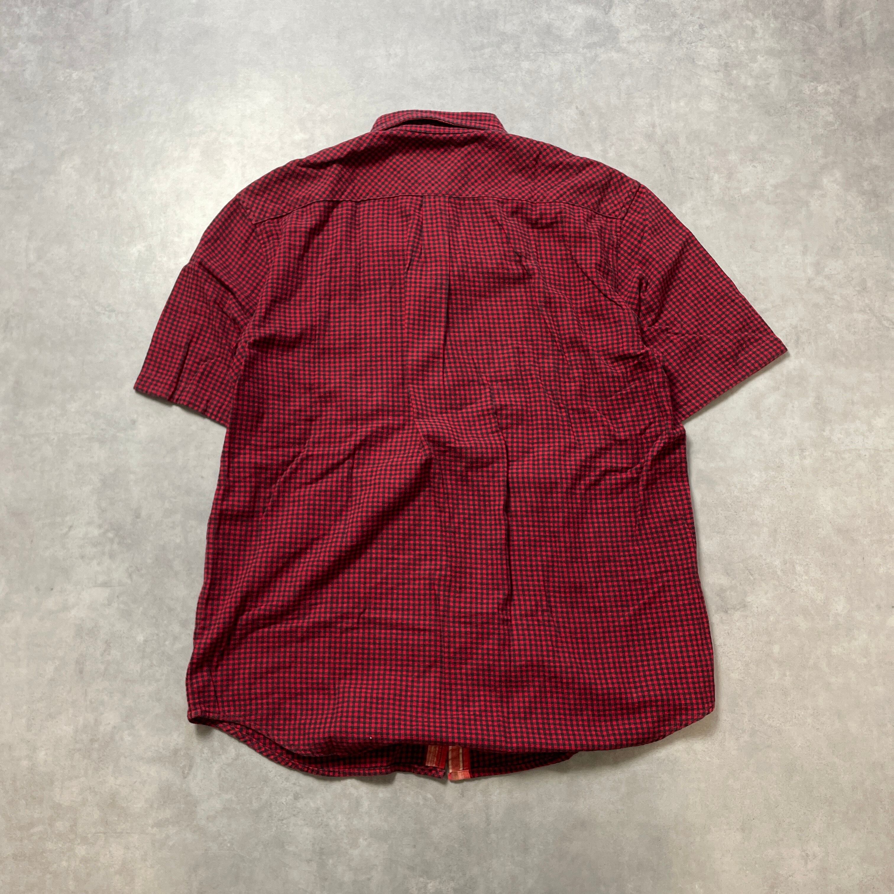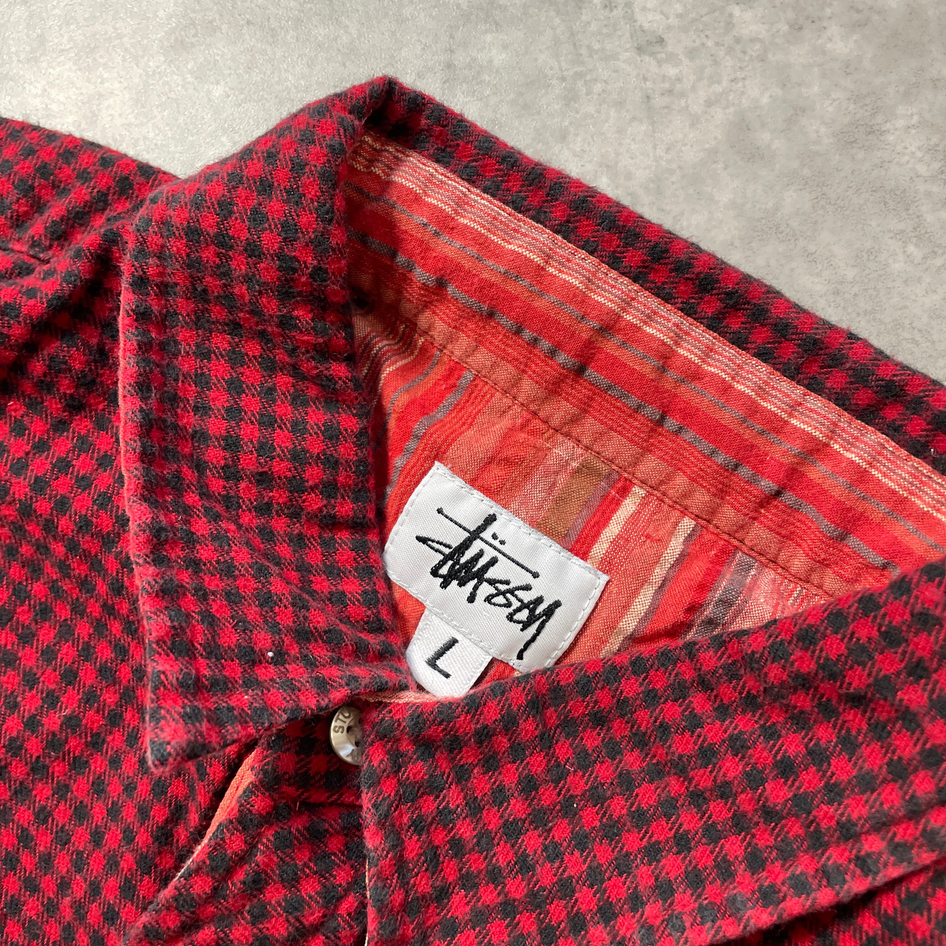 90s USA製 OLD STUSSY ギンガムチェック 赤 半袖 シャツ