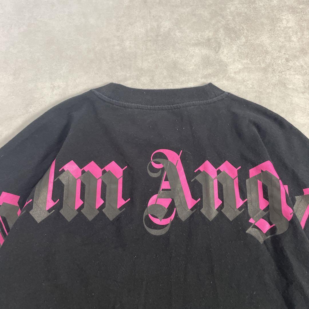 PalmAngelsパームエンジェルス ネック刺繍 Tシャツ 黒ピンク