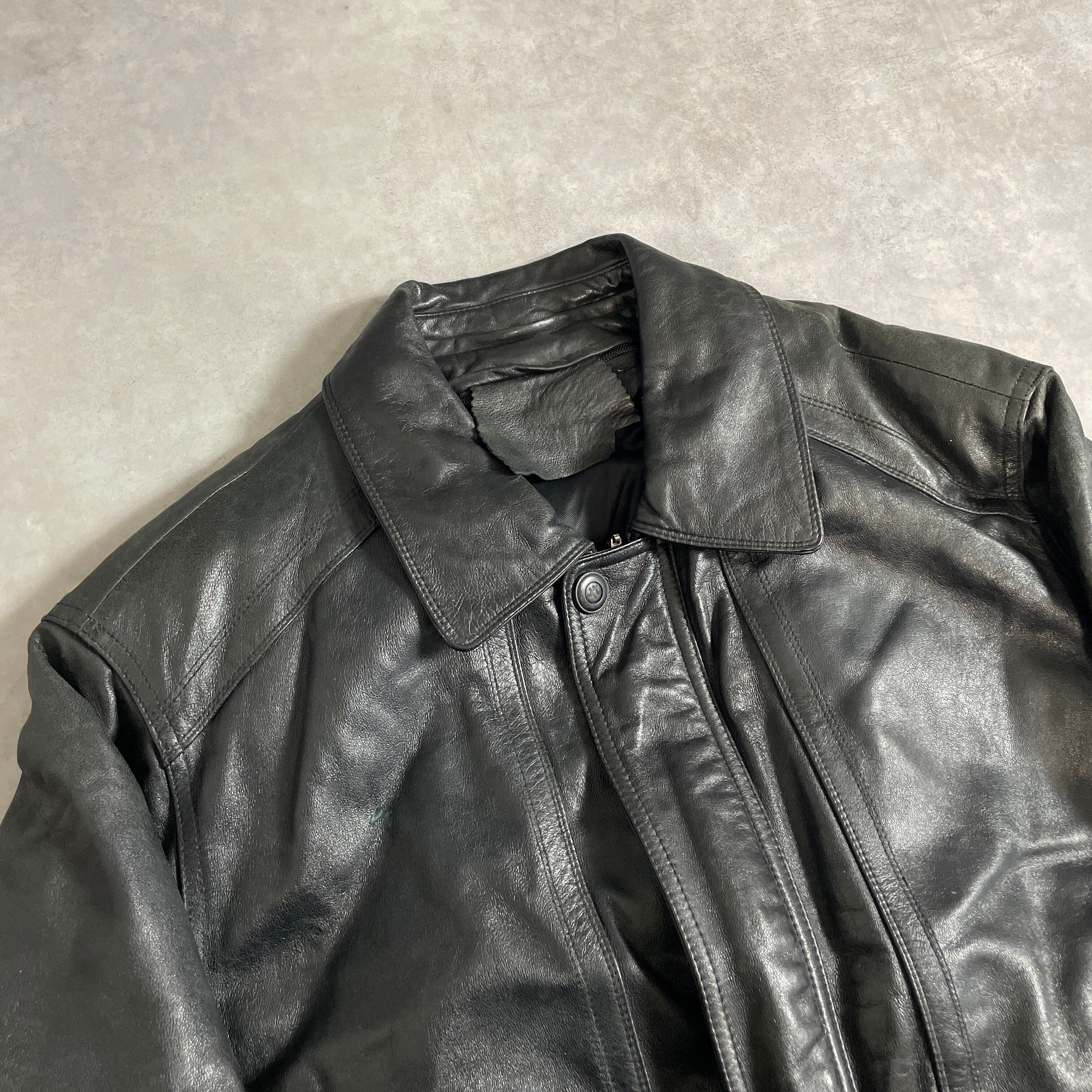 90s デザインレザージャケット 短丈 本革 vintage 雰囲気抜群 L
