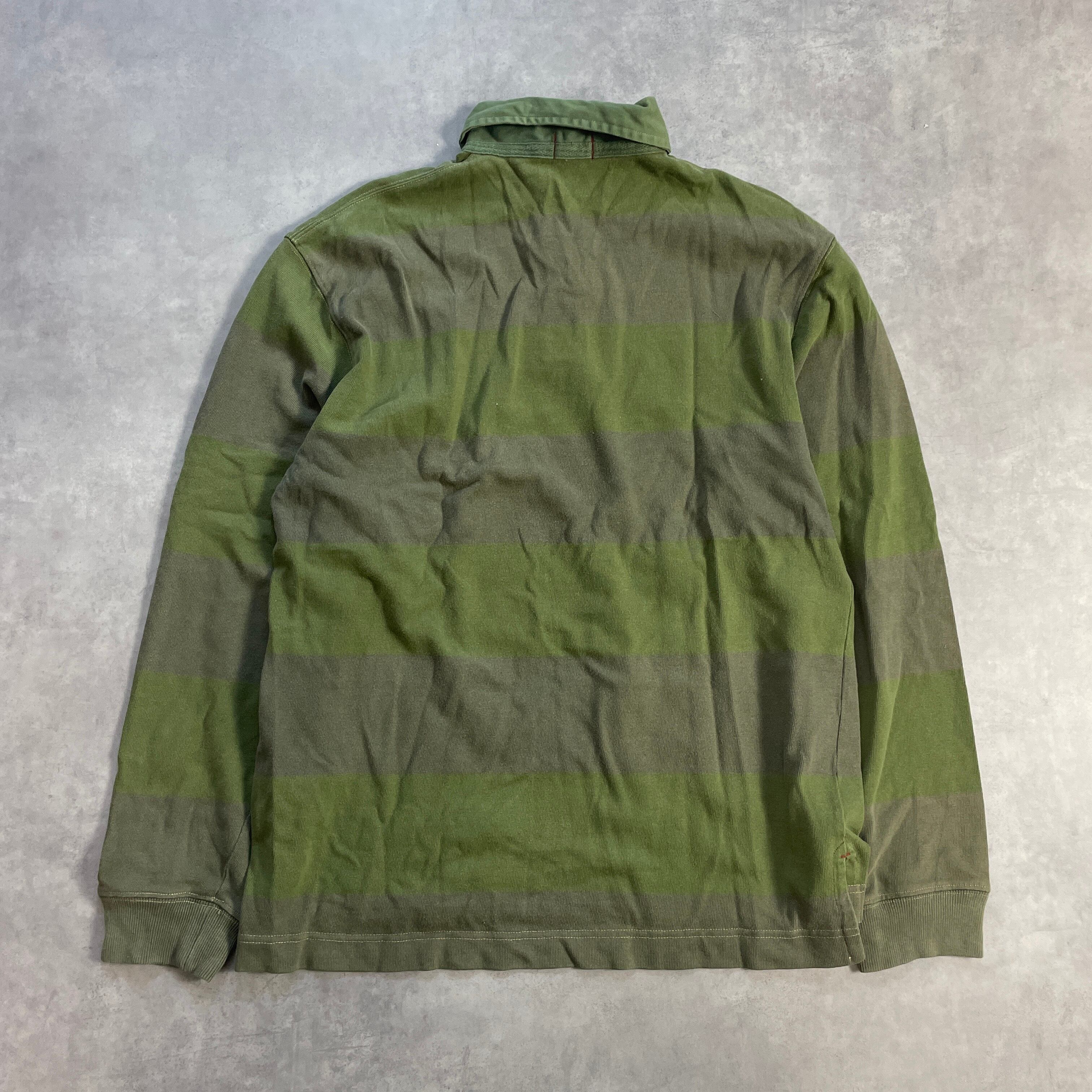 00s OLD GAP ギャップ ボーダー ポロシャツ 長袖 緑