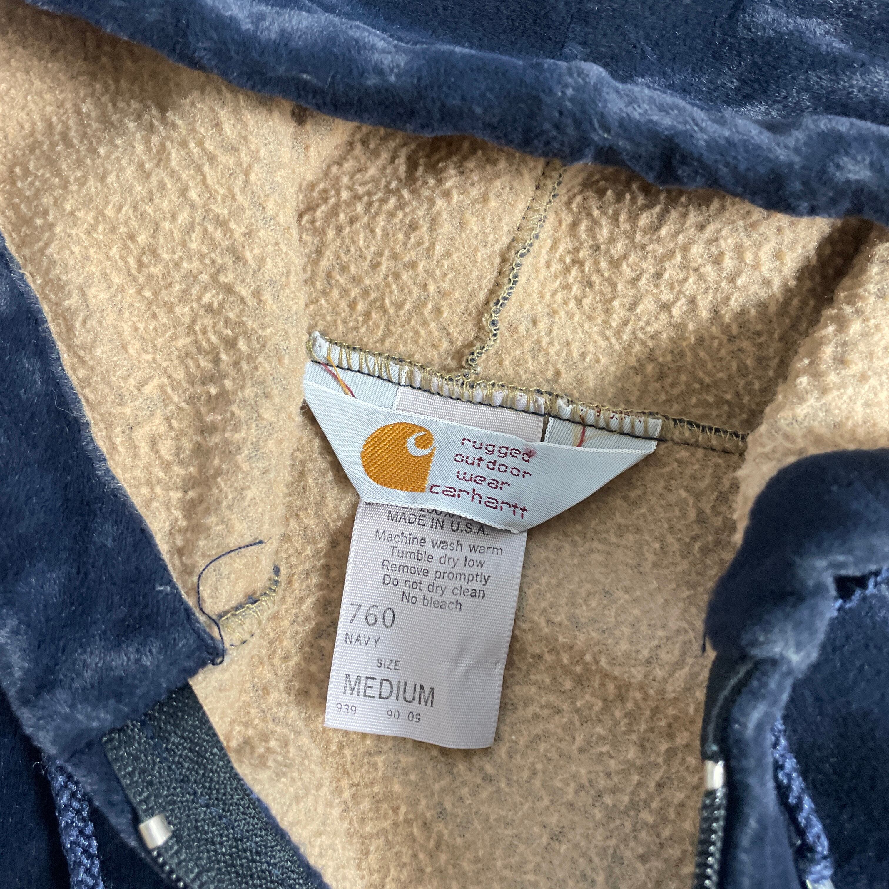 希少 80s Carhartt USA製 ベロア ジップパーカー 極上 紺色