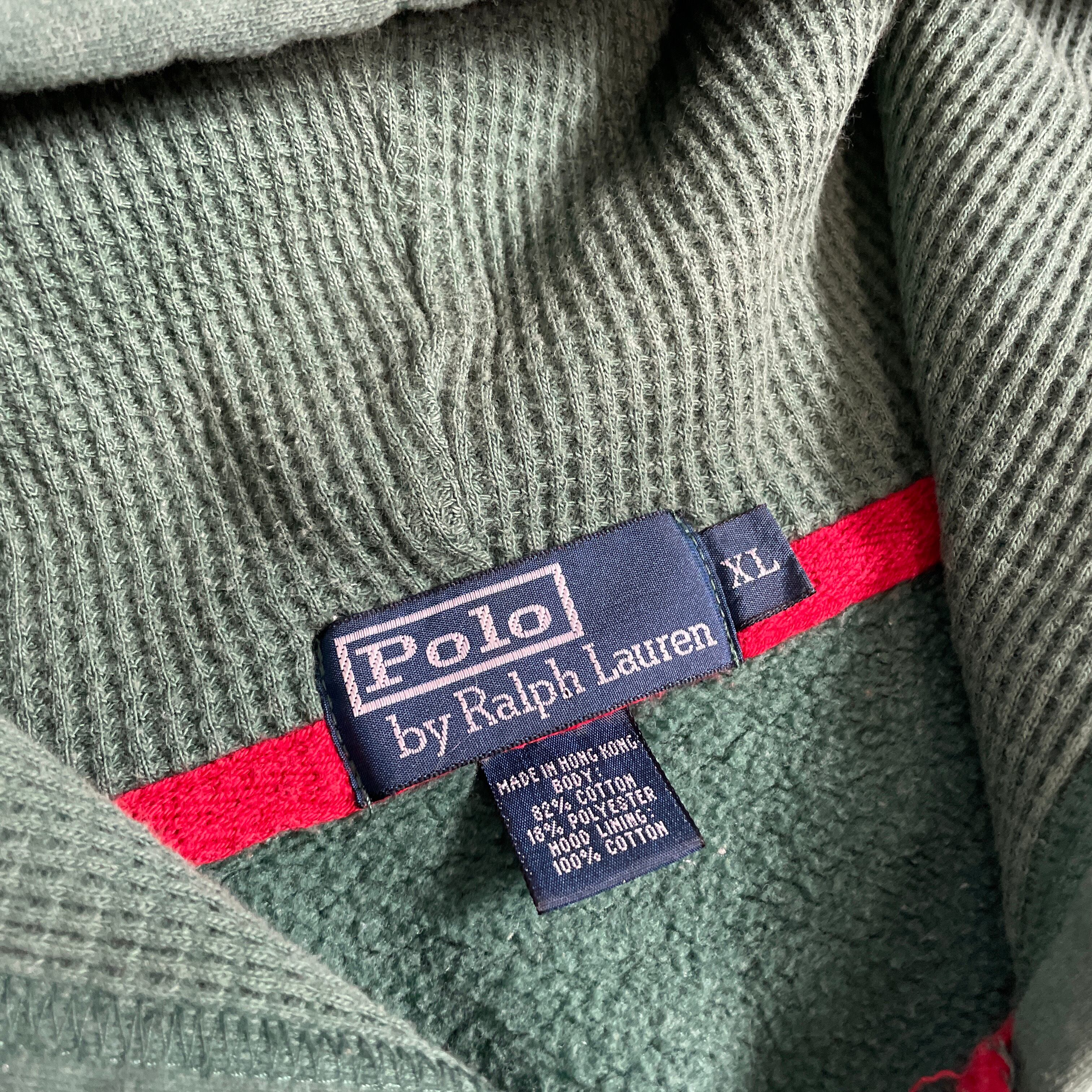 名作 90s ポロバイラルフローレン 刺繍ロゴ 肉厚 サーマル ジップパーカー Polo by Ralph Lauren
