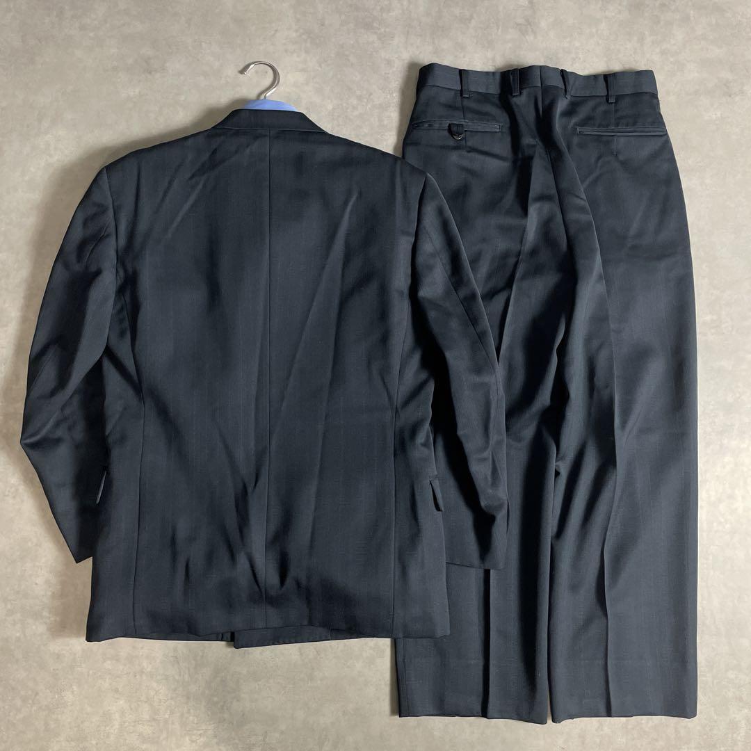 80s-90s スーツ ダブル セットアップ成人式vol.189 紺 ストライプ