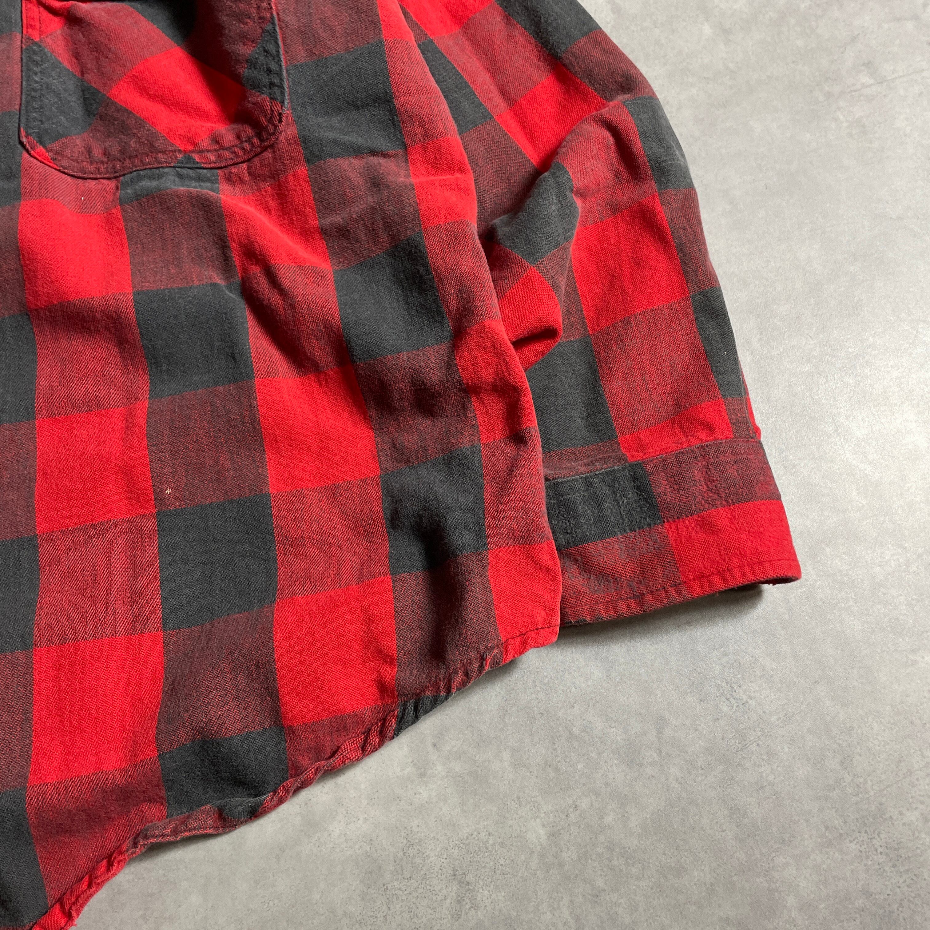 90s ST JOHN'S BAY 赤 チェック 長袖 ヘビネル シャツ vintage フランネル ブロックチェック アメカジ