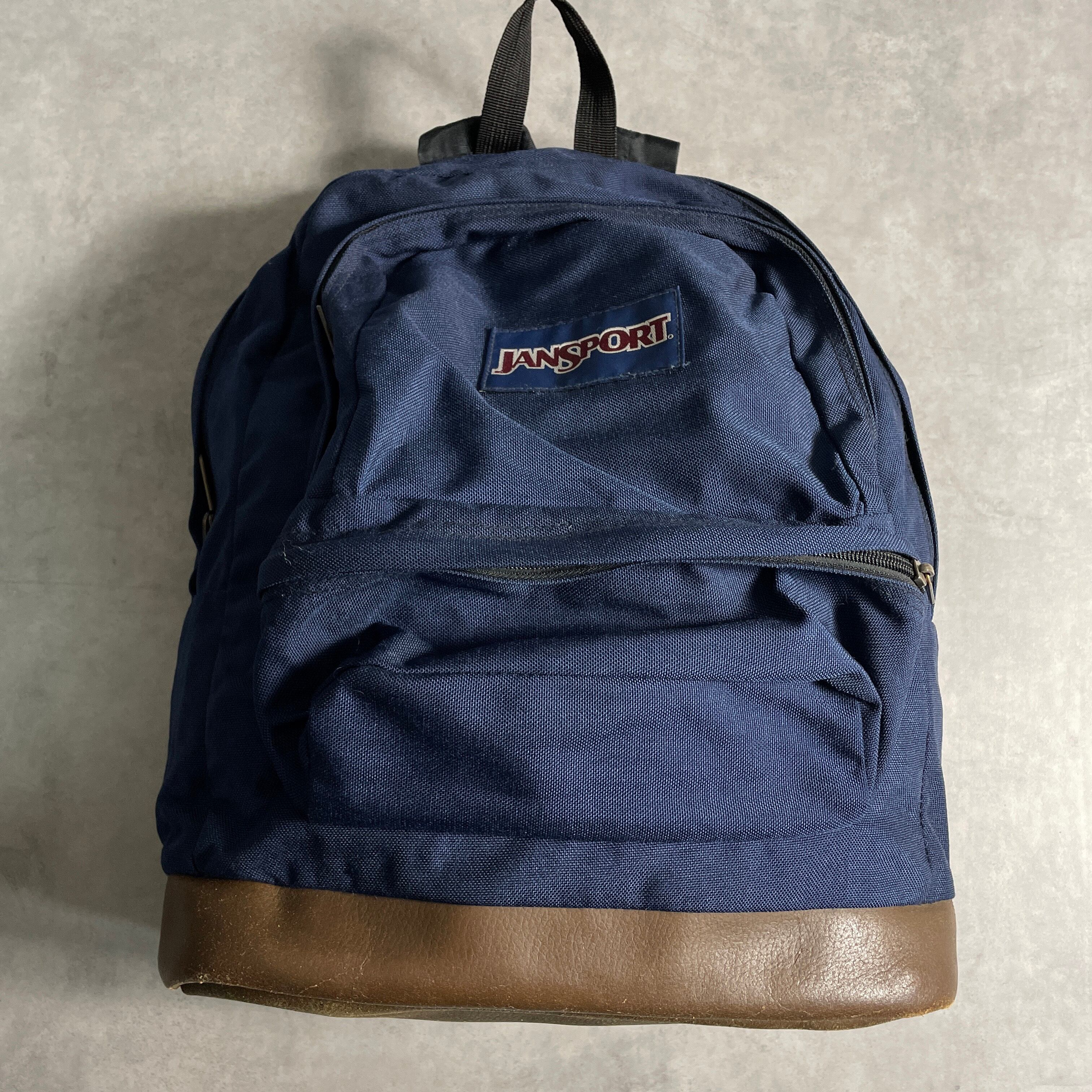 90s-00s JANSPORT LEATHER BACKPACK NAVY ジャンスポーツ リュック レザー